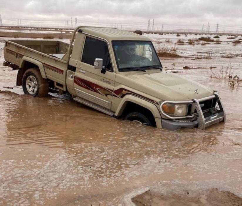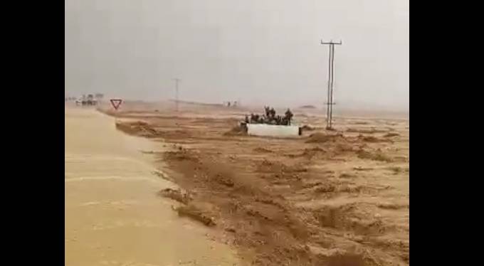 انقاذ 23 شخصا داهمت السيول حافلتهم على الصحراوي