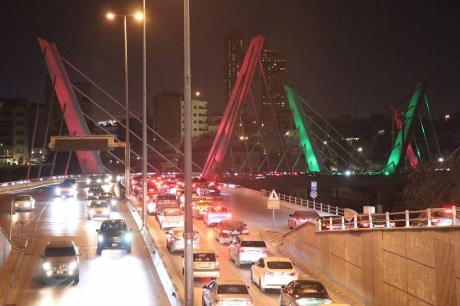 بمناسبة ذكرى استقلال المملكة المغربية ..أمانة عمان تضيء جسر عبدون بألوان العلم المغربي