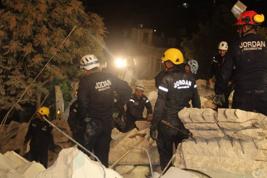 كوادر الدفاع المدني تواصل البحث تحت أنقاض عمارة اللويبدة - صور