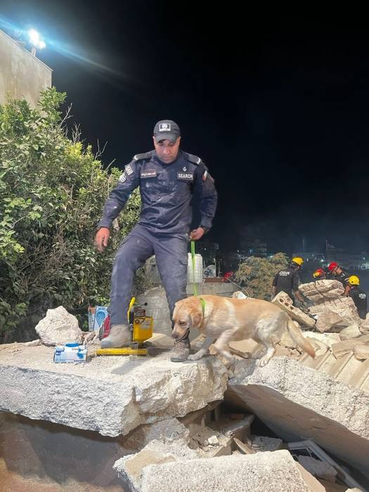 استخدام كلاب البحث من قبل فريق البحث والانقاذ الدولي