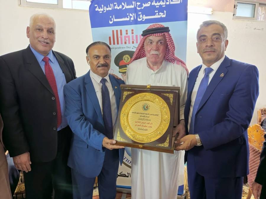 تكريم اللواء الركن المتقاعد ذيب سليمان الحوراني من قبل أكاديمية صرح السلامة الدولية لحقوق الإنسان بدرع فرسان الإنسانية