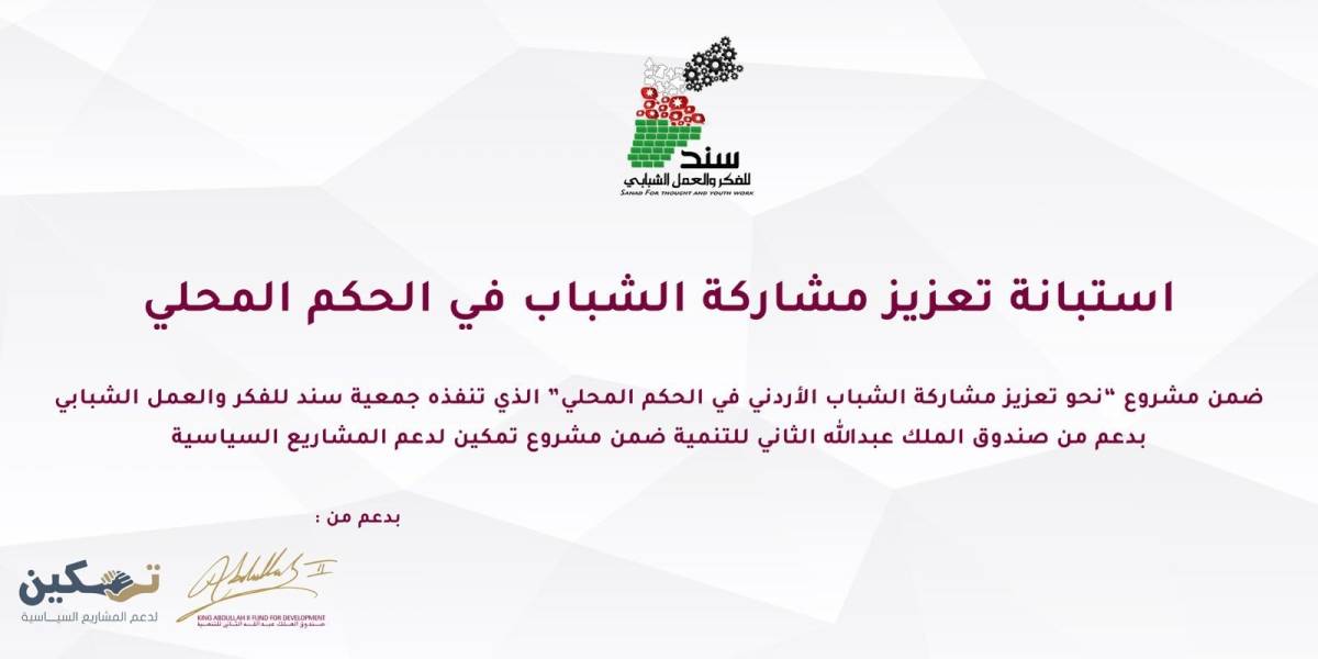 جمعية “سند” تطلق استبانة وطنية حول تطوير منظومة الحكم المحلي بمشاركة شبابية واسعة