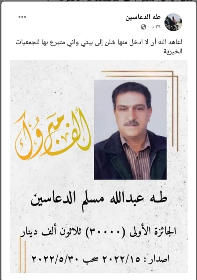 مواطن أردني يتبرع بـ 30 ألف دينار ربحها من اليانصيب