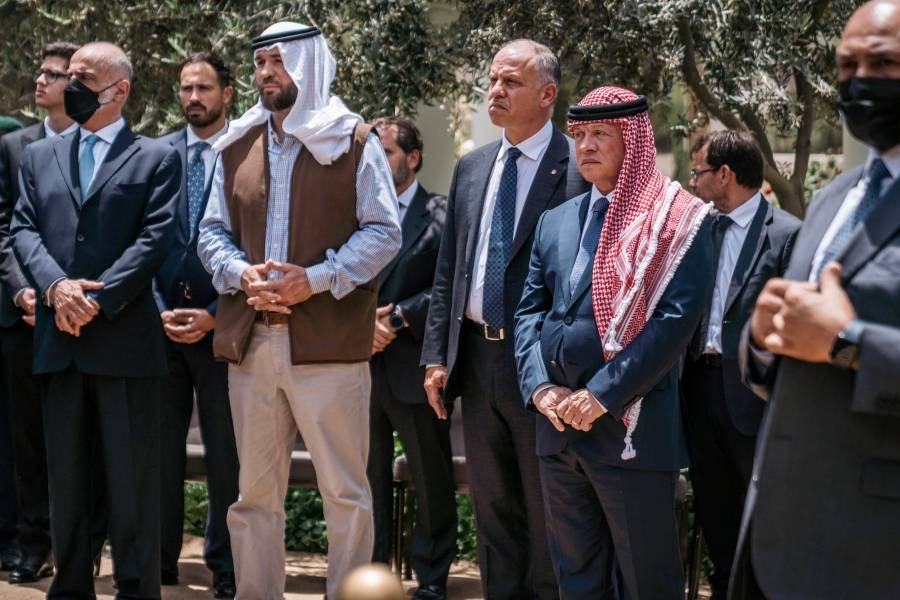 الملكة رانيا تتقبل العزاء من الشيخة موزا بعمان